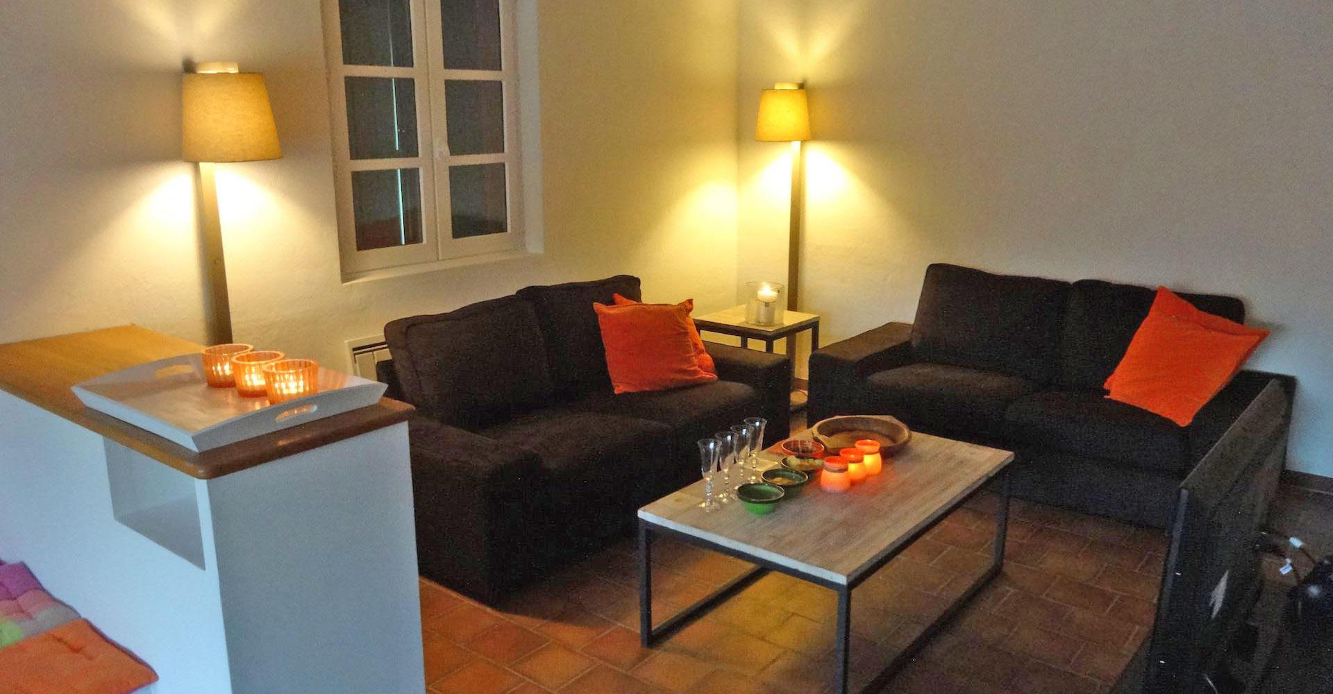 Après vos balades à Buis-les-Baronnies, en Provence, sur ou autour du Mont Ventoux, il n'y a rien de mieux pour mettre fin à votre journée que de vous allonger dans un canapé confortable. Le salon spacieux deux pièces de la Villa Les Pialats accueille tout votre groupe et invite à chacun son "truc" à faire ou à se réunir avec un verre de vin pour remplir vos soirrées d'hiver autour de la cheminée qui crépite.